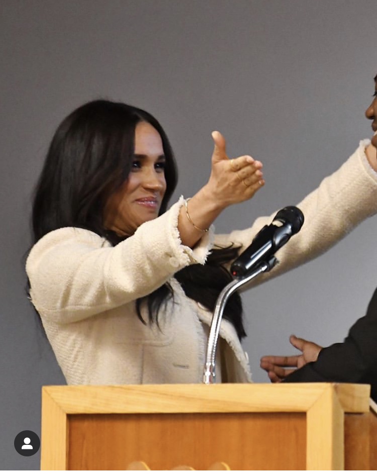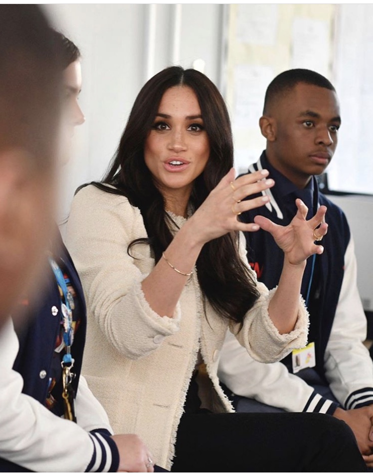 On a surprise school visit ahead of International Women's Day to meet with Geraldine Dear, one of the strikers, and spend time with students at the Robert Clack Upper School to meet the town’s next generation of female role models, The Duchess of Sussex has called on teenage boys to "value, appreciate and protect" the women in their lives.